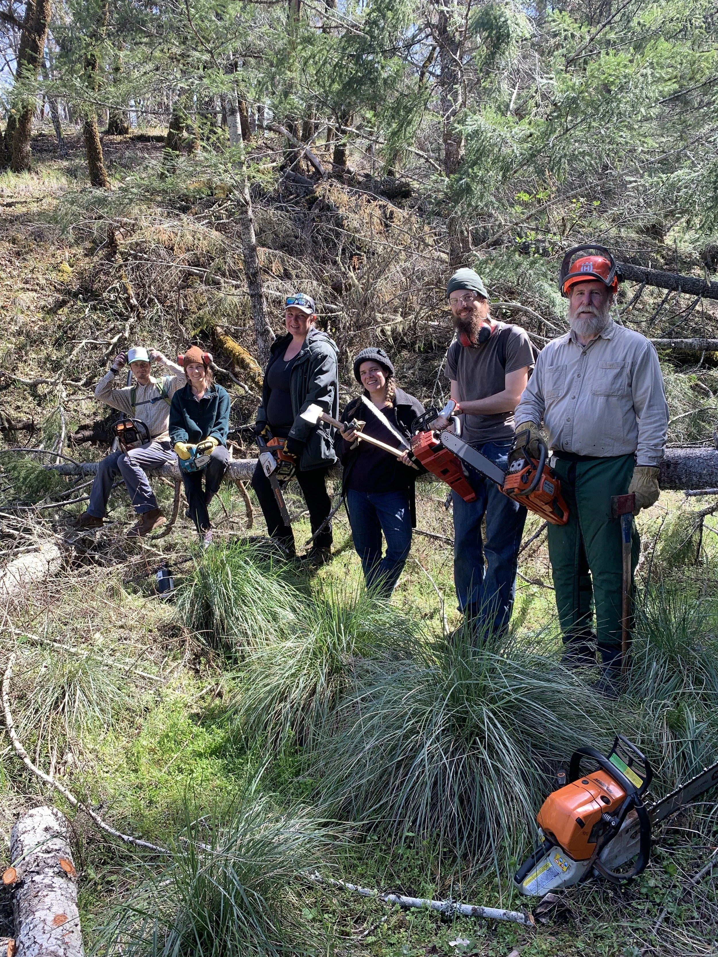 The Hands on Skill Building Practicum is an opportunity to go beyond the workshop setting and gain experience in the field. No two tree falls are the same, each tree presents different considerations to a safe and predictable fall. Gain experience during this week of guided mentorship falling trees. The work in the practicum will serve Oak Woodland Restoration and produce Timber for Building.
